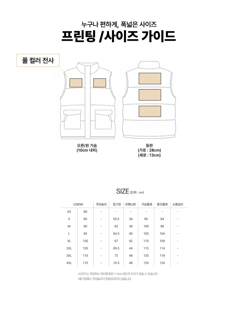 XS ~ 4XL |