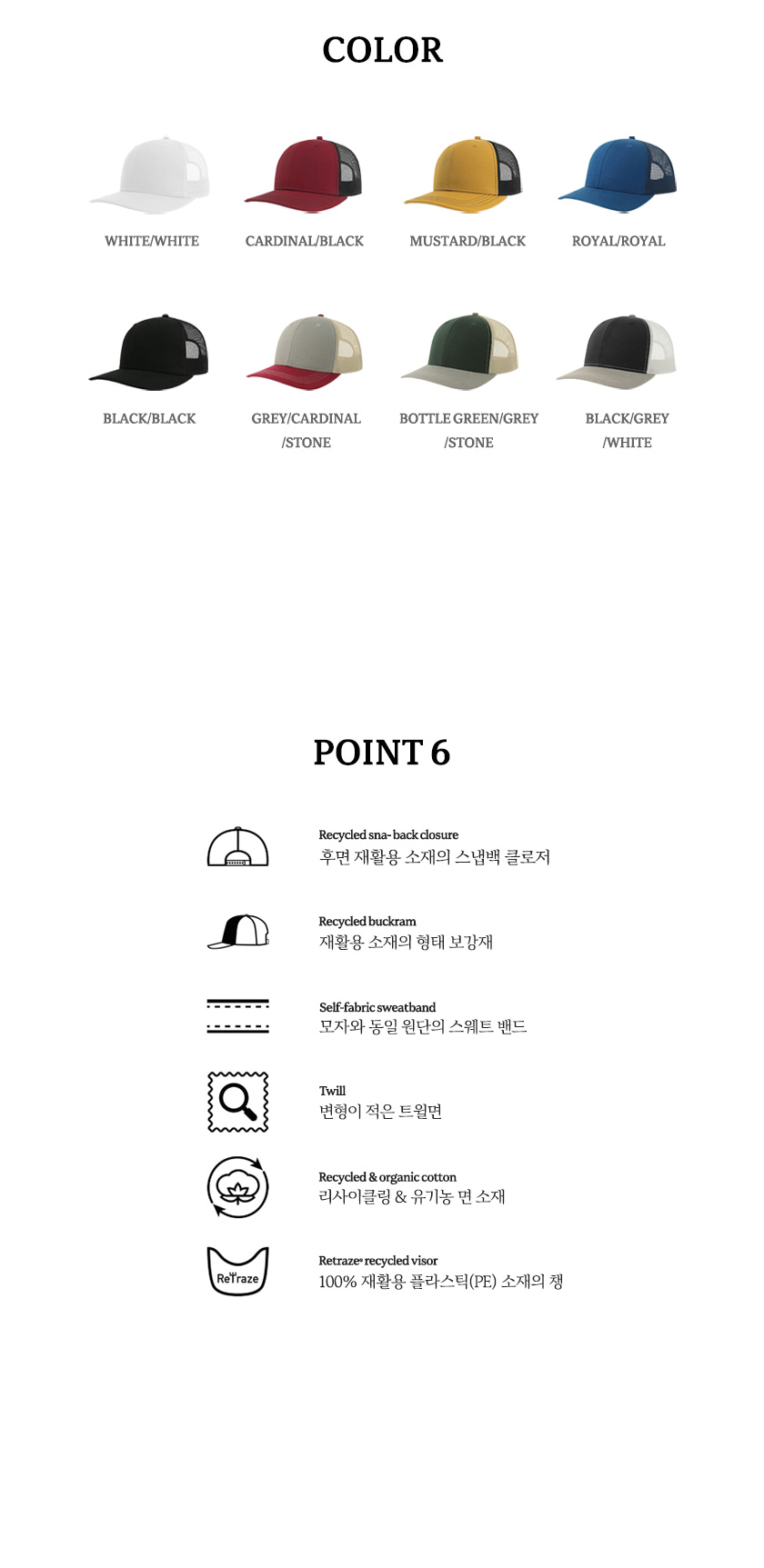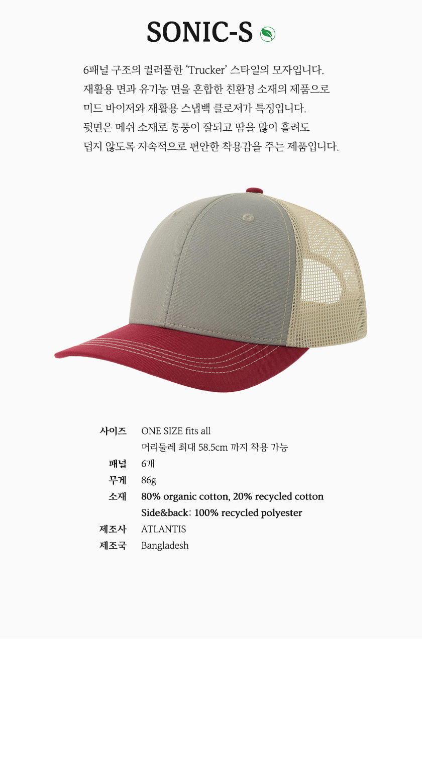 80% organic cotten, 20% recycled cotten, side&back:100% recycled polyester |